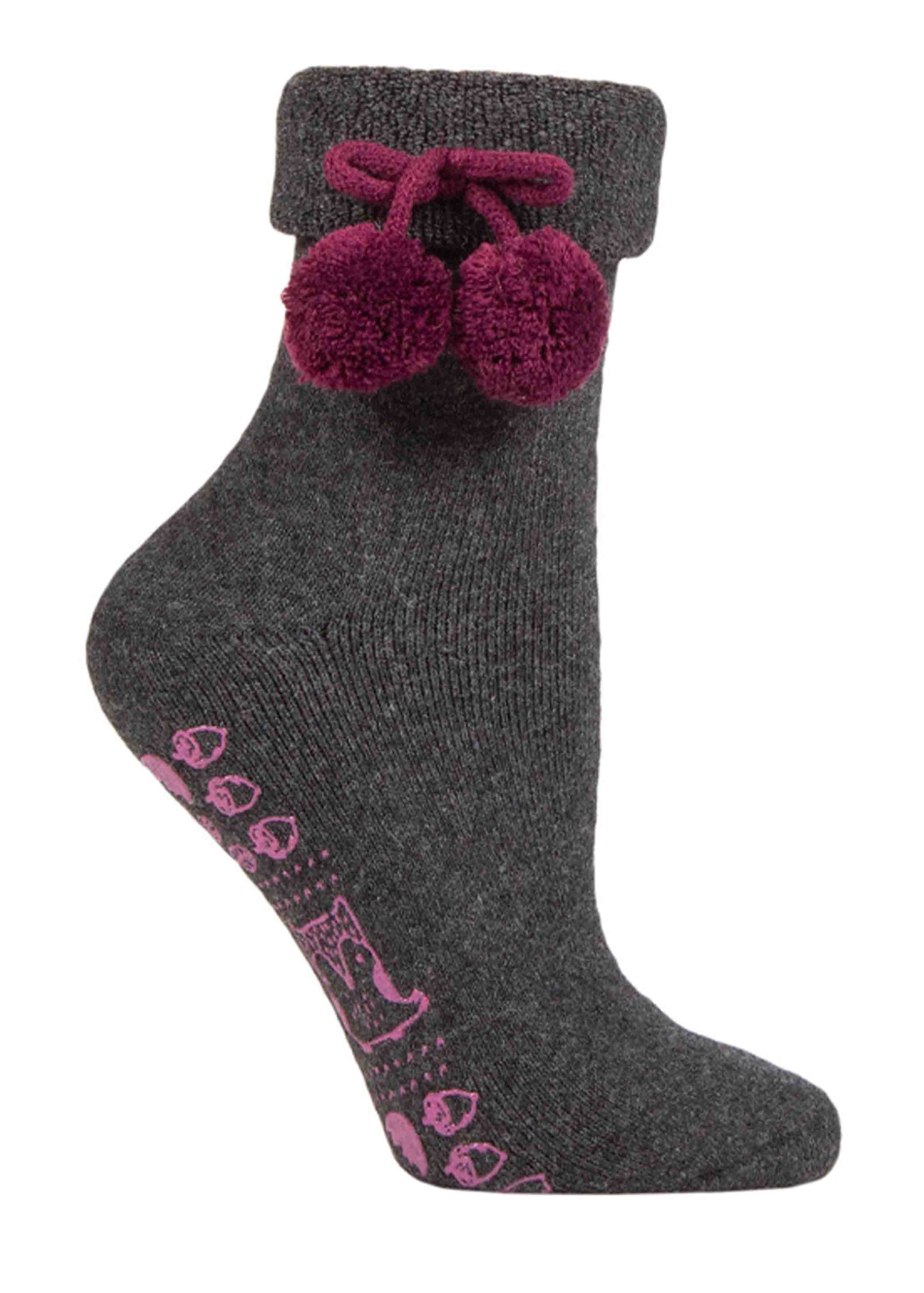 Warm thick knitted wool blend socks with practical non-slip sole making walking safer. These socks have a pretty pom pom detail. Size 4-8.