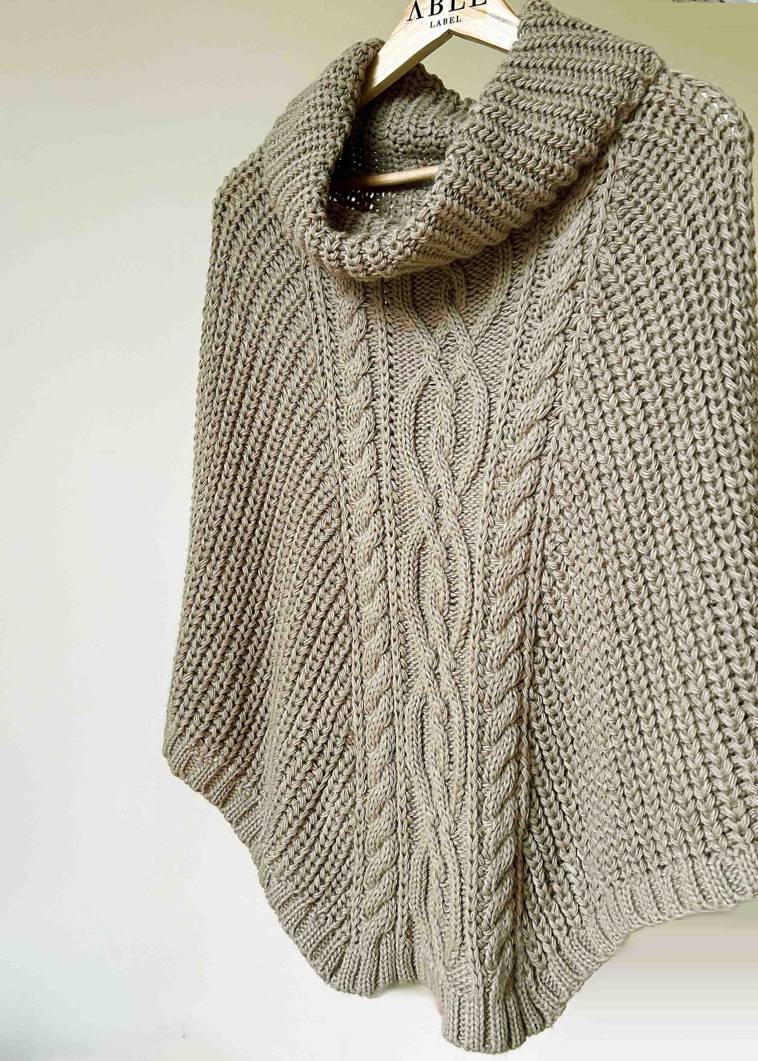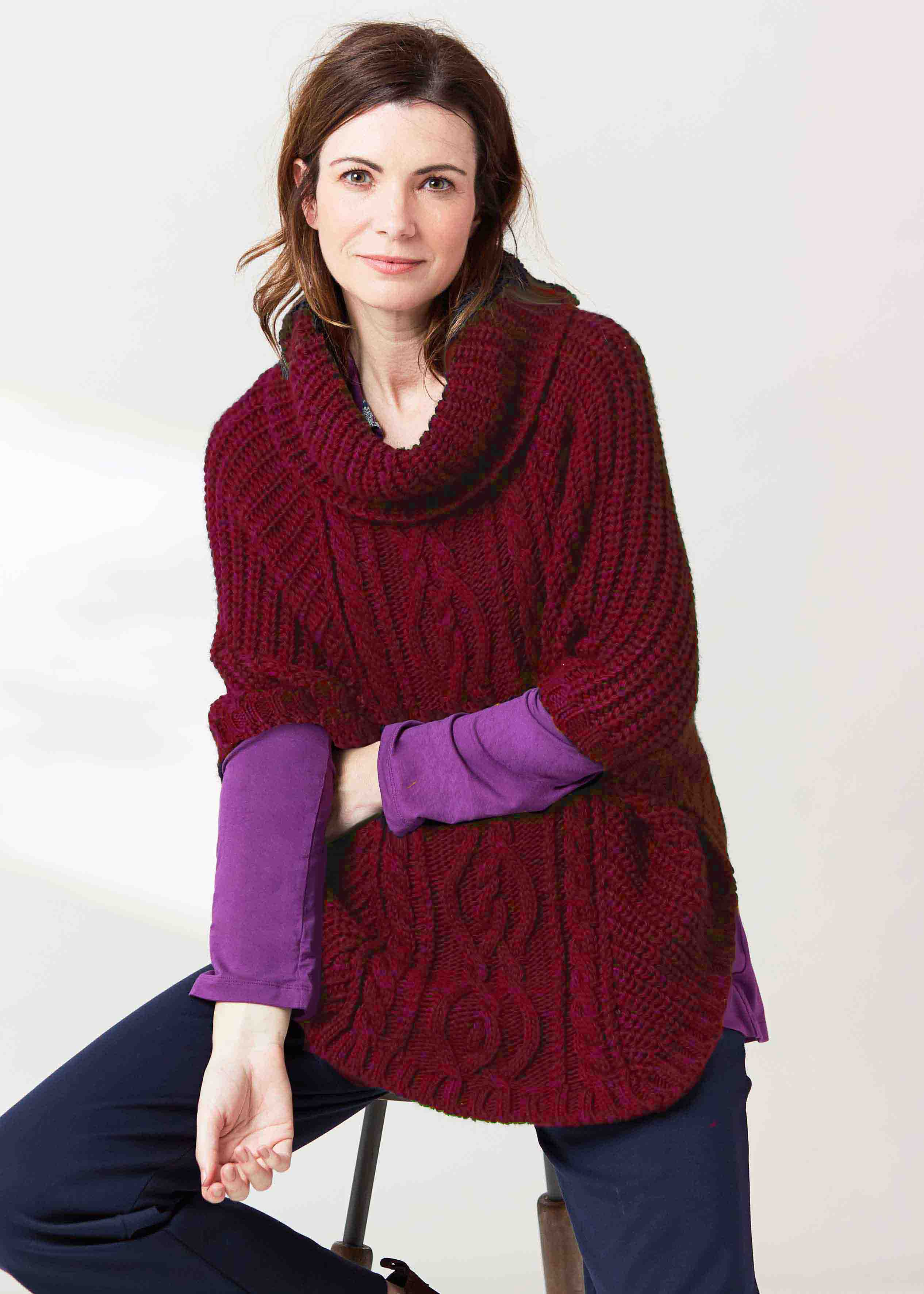 The knitted roll neck in poncho style is ideal if sleeves prove difficult to get on being sleeveless. It makes a great layering piece for extra warmth, especially with the cosy roll neck. One size.