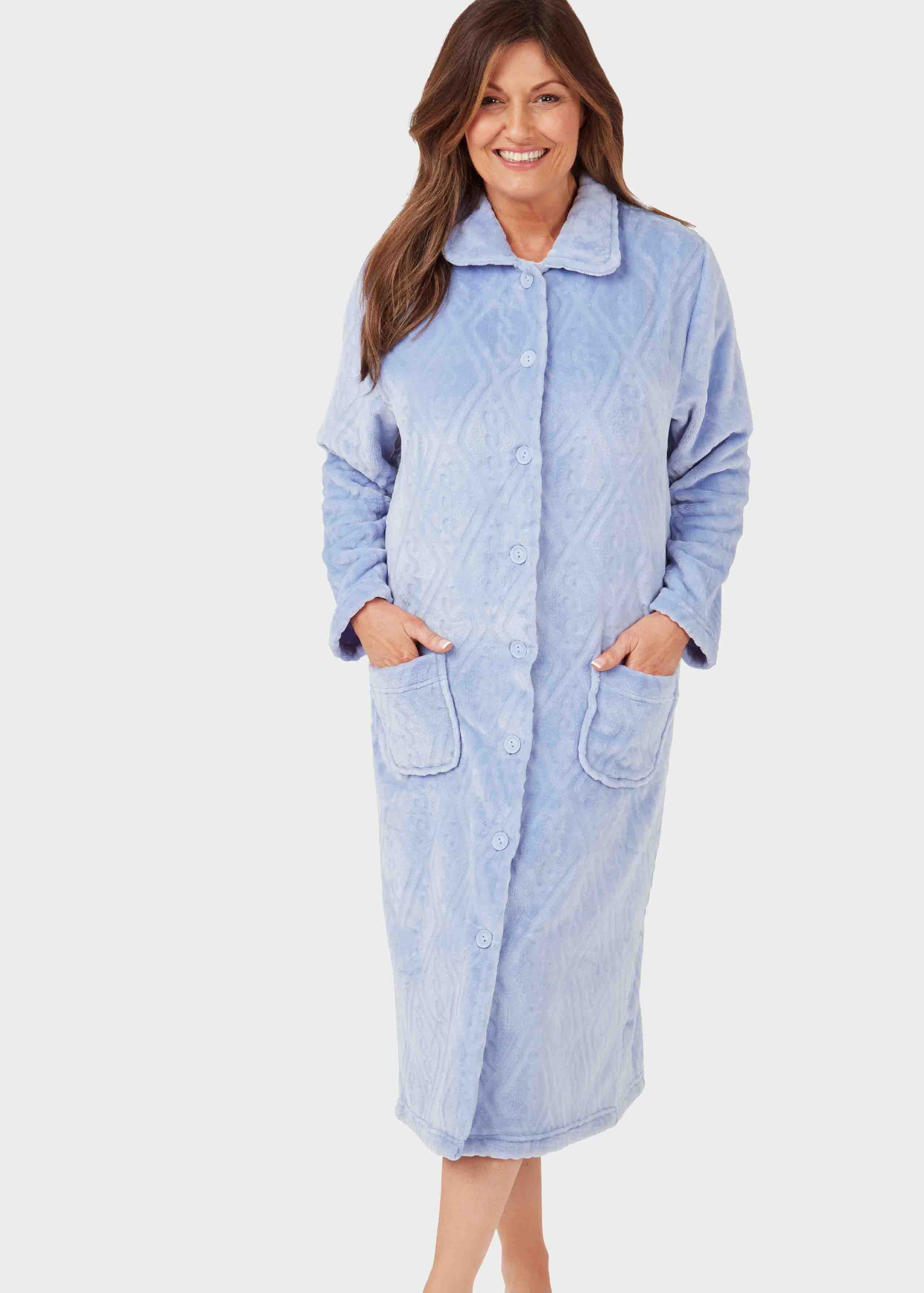 Super soft luxury chevron fleece fabric, this cosy dressing gown has front VELCRO® brand fastenings , discretely hidden behind buttons that are for display only. A perfect gift for a loved one or cosy treat for yourself.