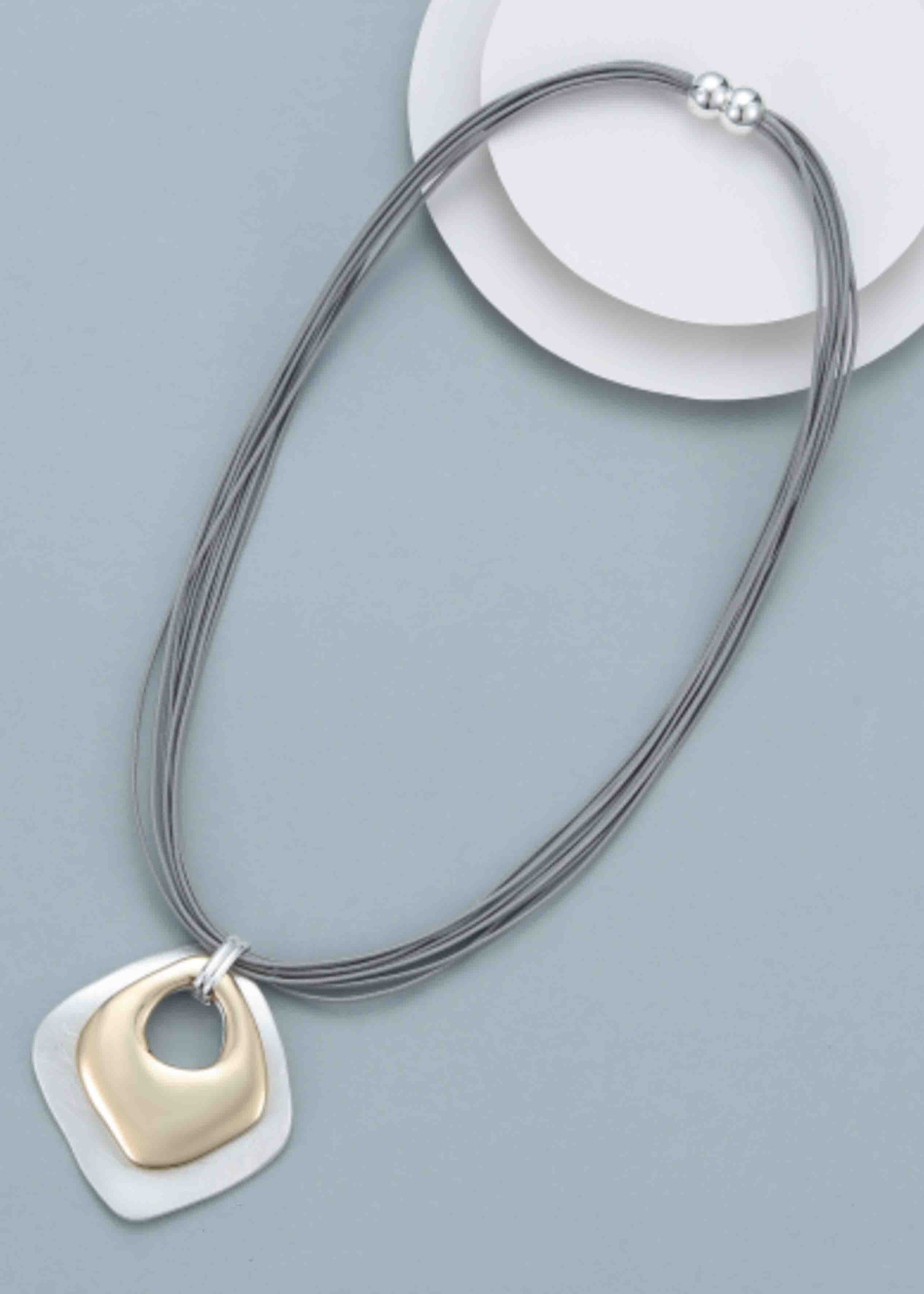 This classic yet statement, mixed metals necklace will go with an array of outfits. It has a secure magnetic fastening meaning no fiddly fastenings to contend with. Perfect for adding a smart finishing touch to your style.