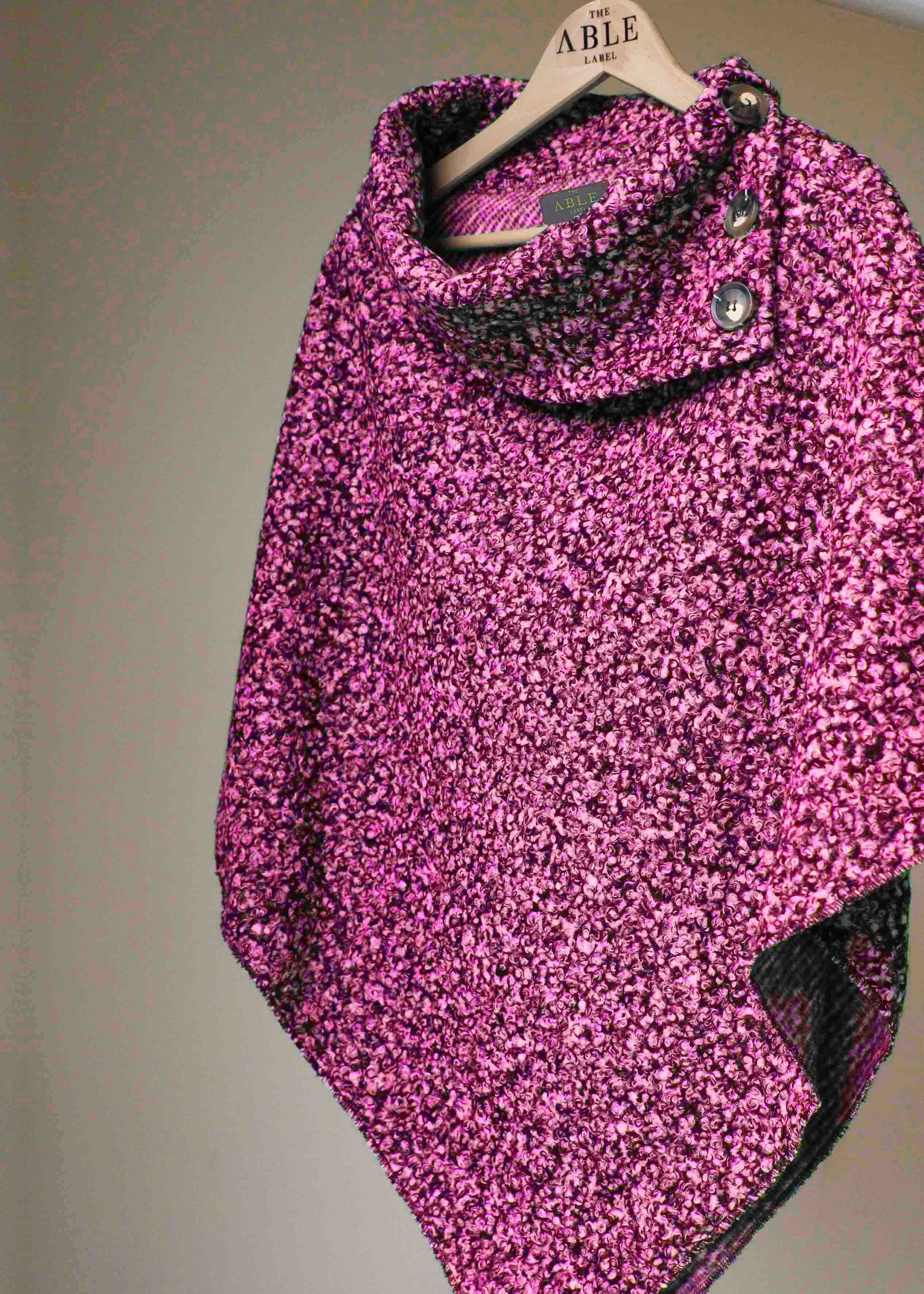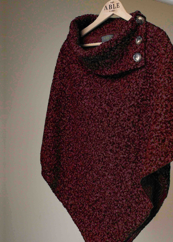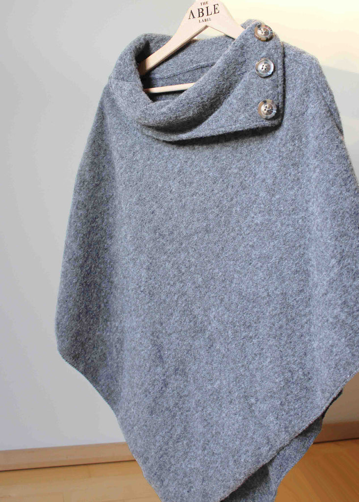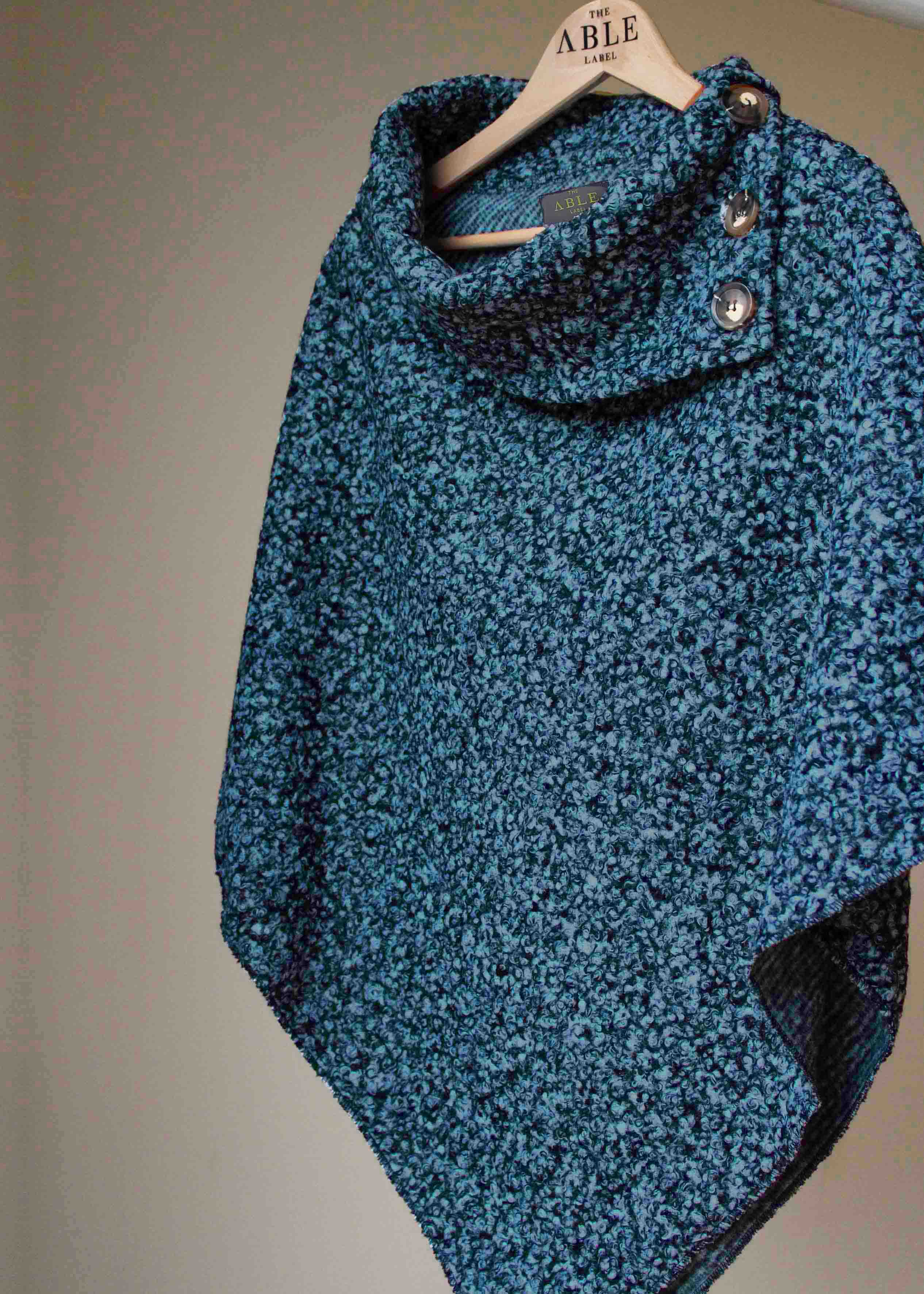 This warm and cosy wool mix poncho style is ideal if sleeves prove difficult to get on being sleeveless. Super stylish, it makes a great layering piece for extra warmth when out and about. It is an ideal length for anyone in a wheelchair or seated for long periods. Buttons for display only, poncho dresses overhead. One size.