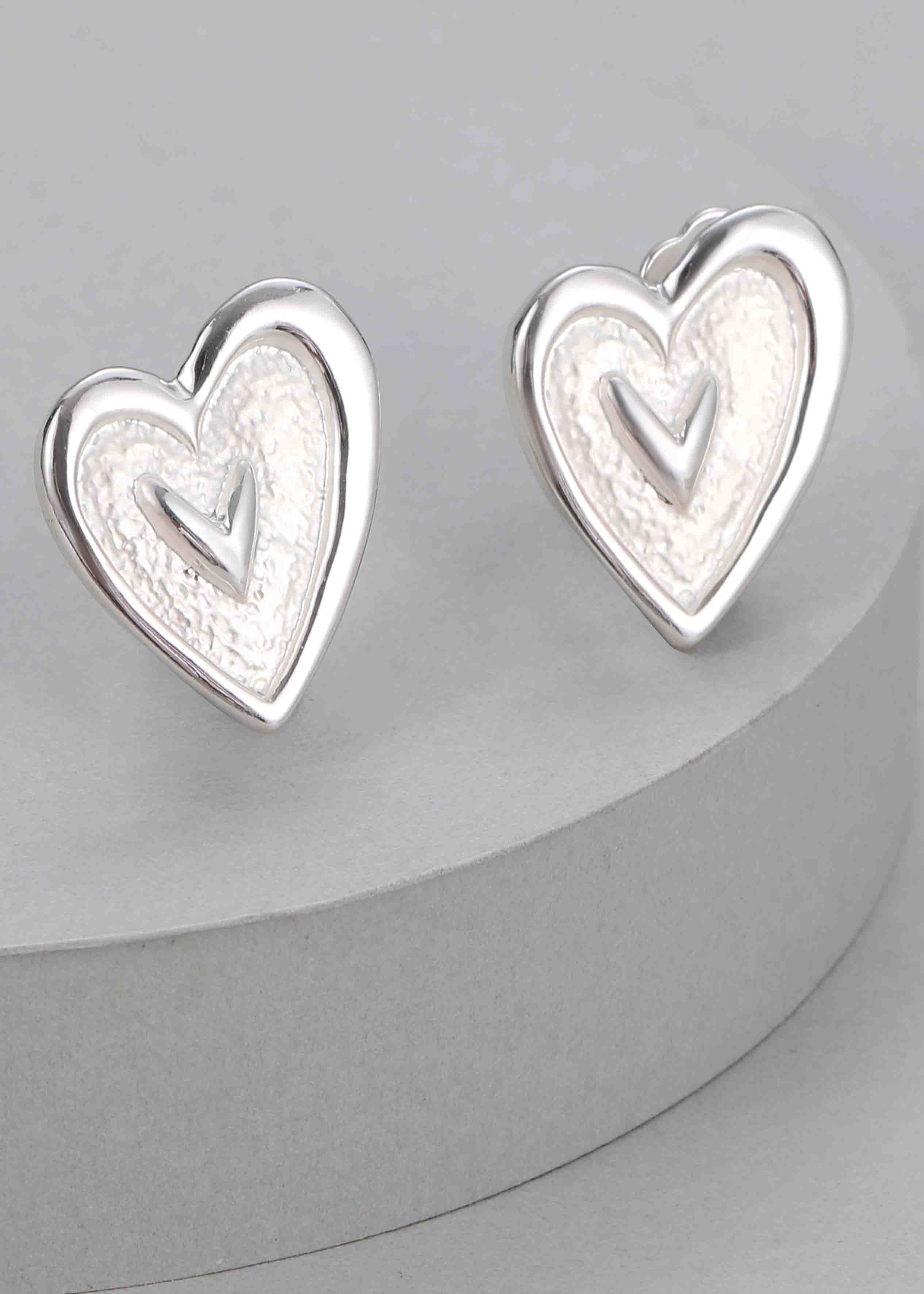 This pretty pair of silver heart shaped earrings can be dressed with one hand using the easy clip on fastening.