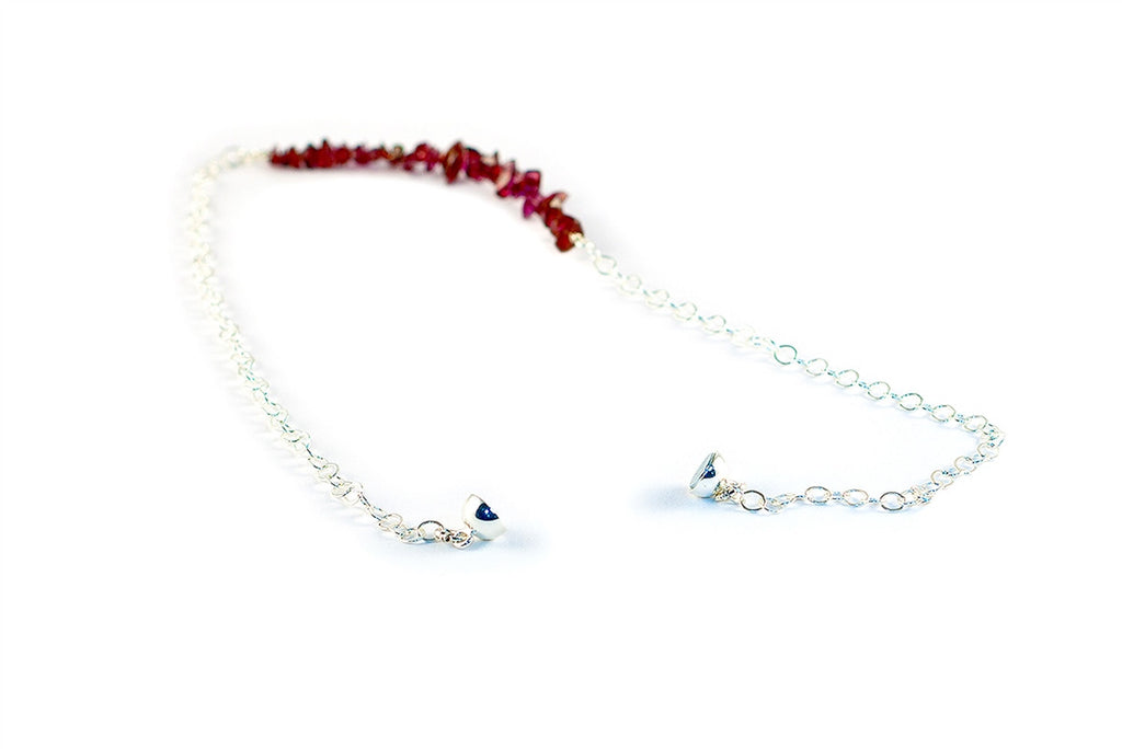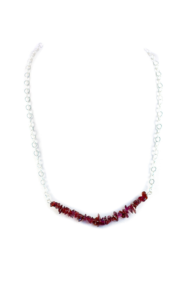 Handmade in Britain, this elegant necklace is made from Rhodolite garnet nuggets set on a sterling silver chain. Magnetic ball clasp in .925 sterling silver makes fastening and unfastening easier and less fiddly.