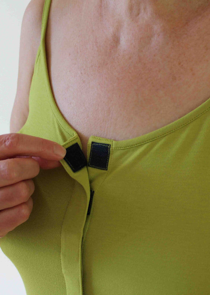 This vest is soft against the skin, makes a great layering piece and best of all, discretely opens at the front with touch close VELCRO® so overhead dressing can be avoided.