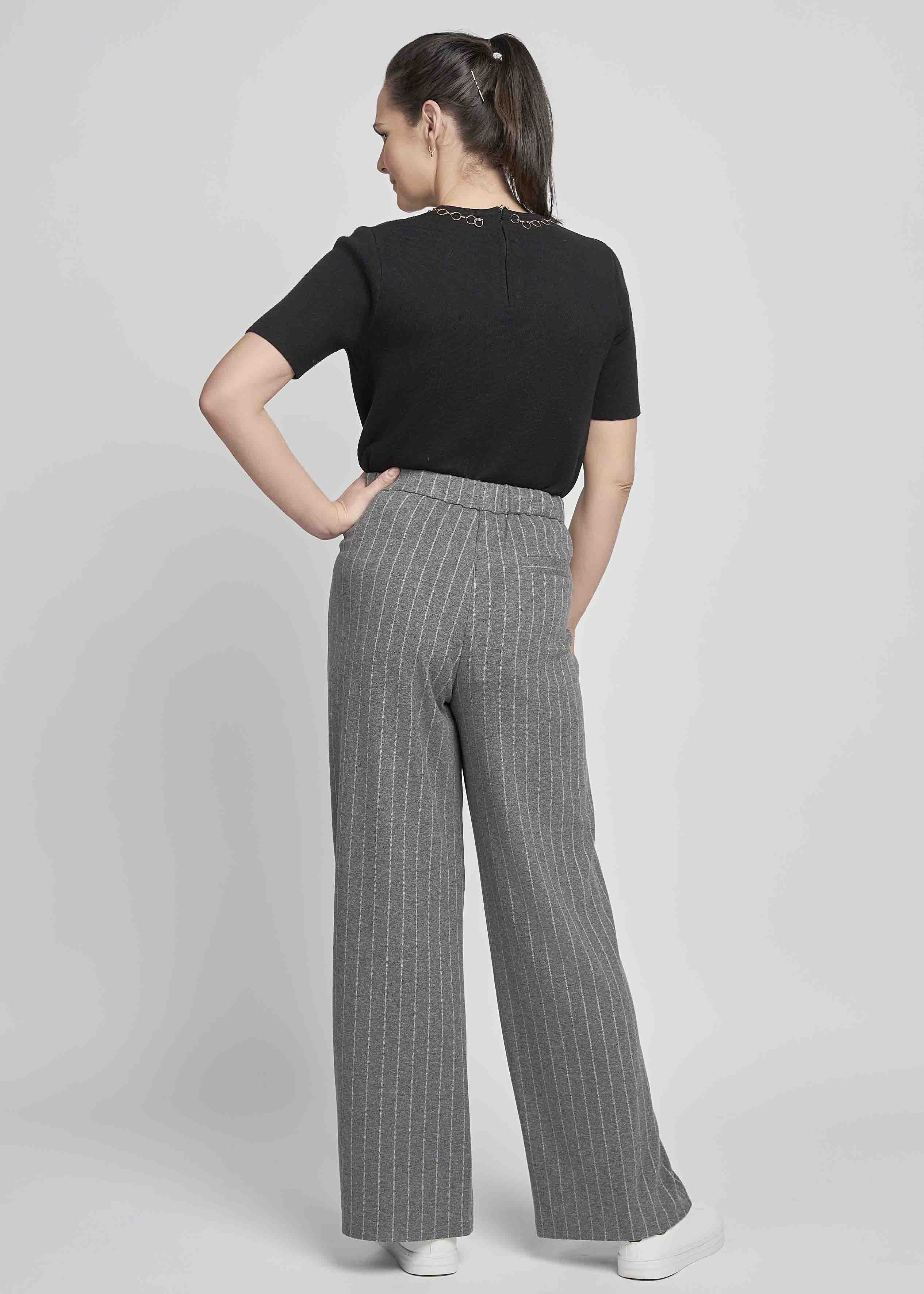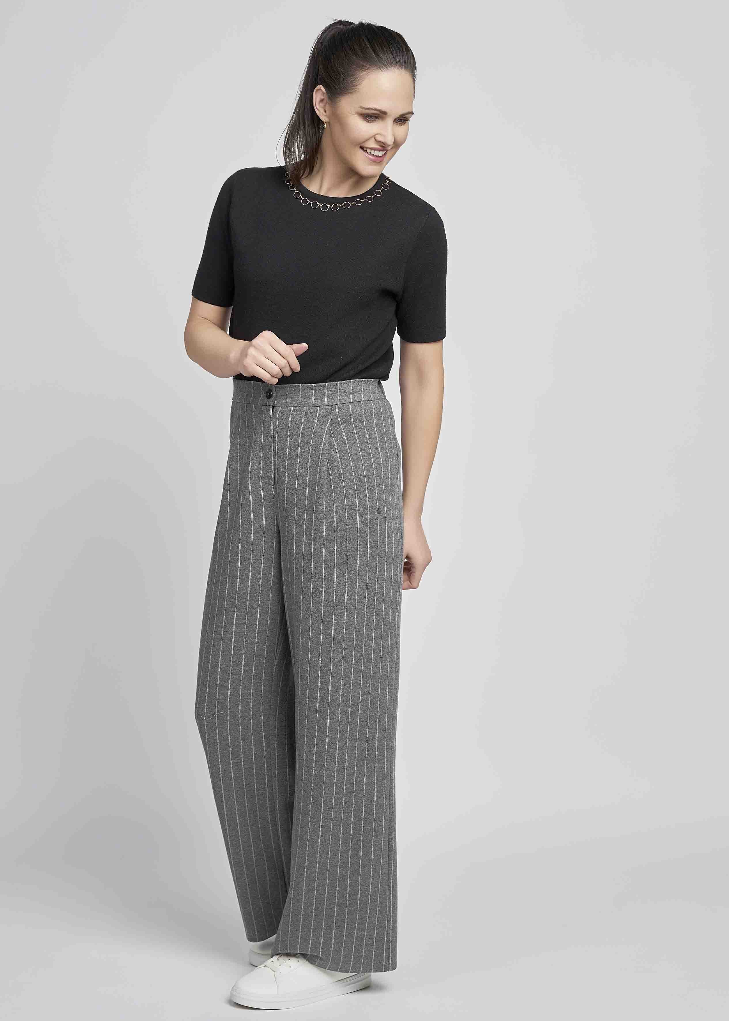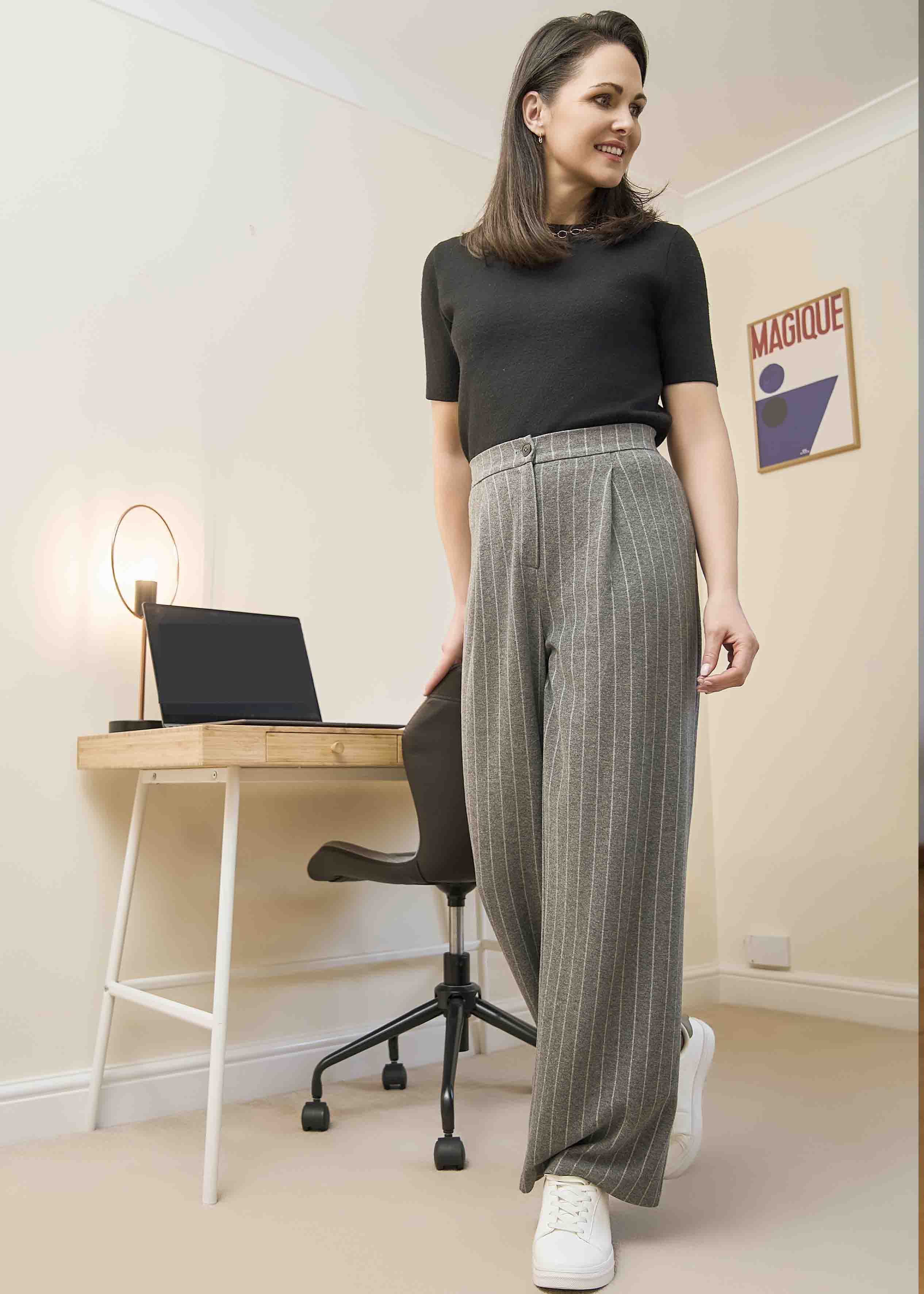 This wide leg full length trouser has a flattering and comfortable high waist and wider leg. It has a soft and warm wool-like handle making it ideal for cooler days. Buttons are only for display with the fly being a combination of Velcro and zip. Helpful pulls at the waistband, make these trousers easier get on. With convenient side pockets and an elasticated back waistband for comfort, these trousers are a winter must have.